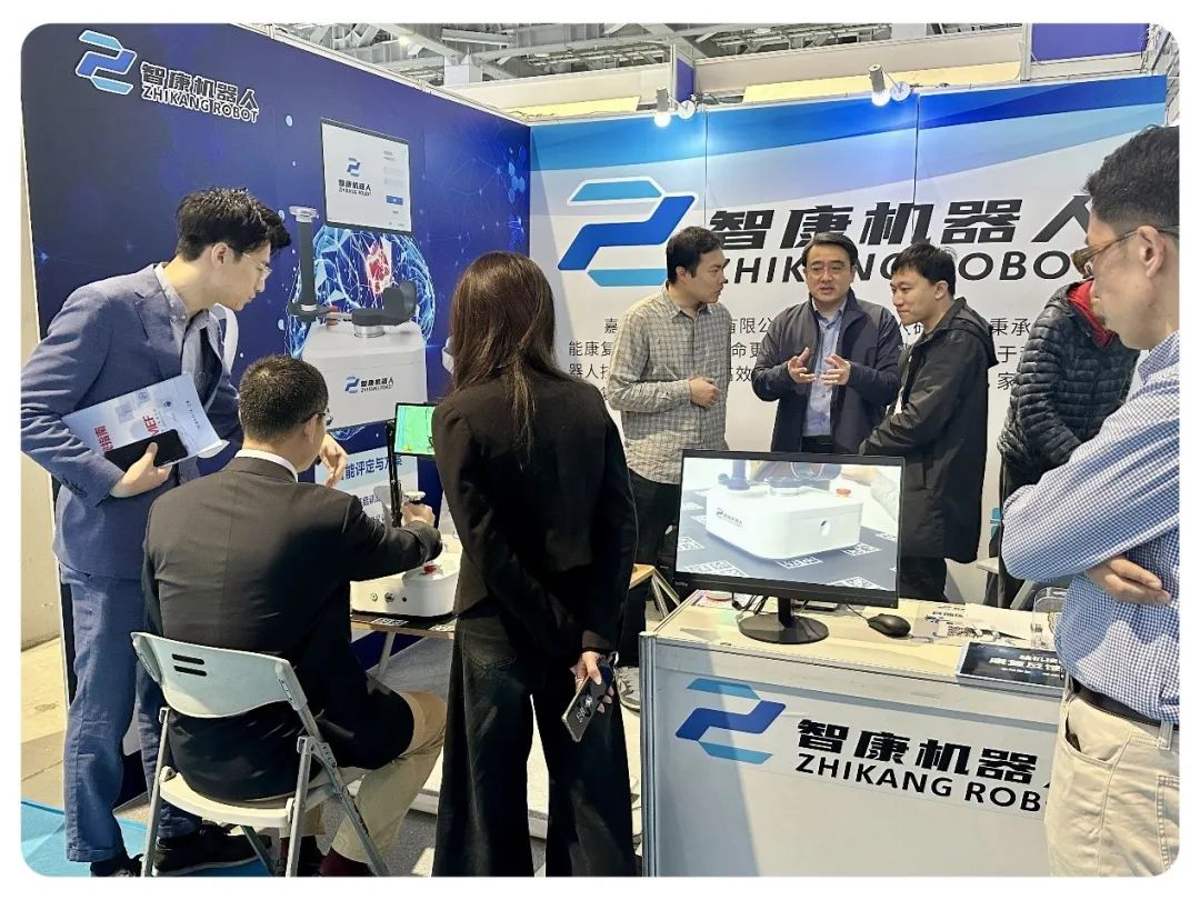 机器人平台孵化企业——智康机器人公司的全周期多场景上肢康复机器人被评为CMEF康养机器人优选产品,上海交大医学院康复leyu.乐鱼单春雷院长与太平洋保险一行,好博医疗,招商集团,光大特斯联,上海电信等公司的众多业界领军人物纷纷莅临展台交流体验。